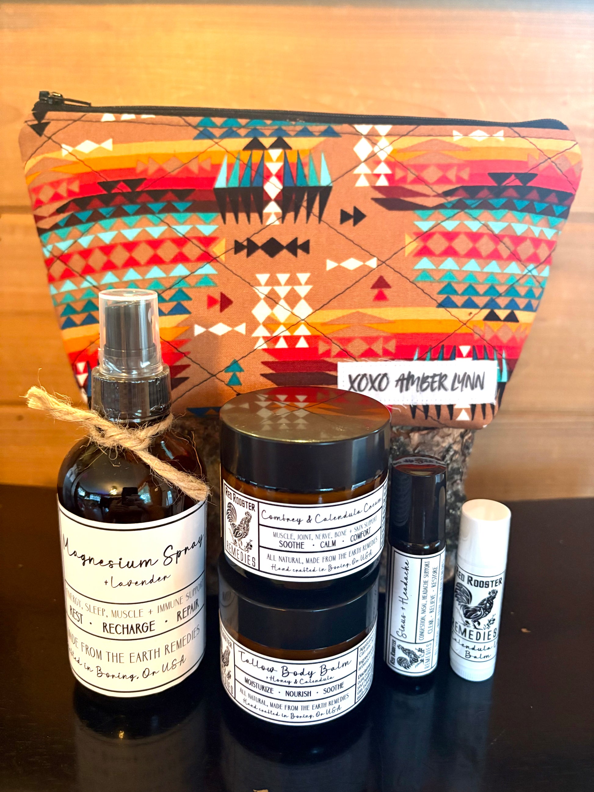 Our Wellness starter kit is comprised of all your essentials to help with sleep, immunity, sore muscles, aches, pains, dry skin + skin conditions, and relief of seasonal allergies and congestion.
